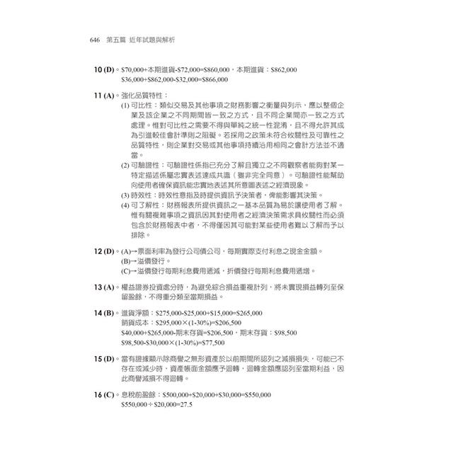 在熟讀各章重點後,要知道自己有沒有將考試要點都記下來,最有效的方法就是馬上練習題目,記帳士考試是很講究實作的考試,因此這本書在各個重點底下都有「精選試題」,建議你反覆練習,才能掌握所有的考試題型。如果不太會寫,沒關係,所有題型都有附上解析,方便你隨時隨地檢視自我學習效果!
