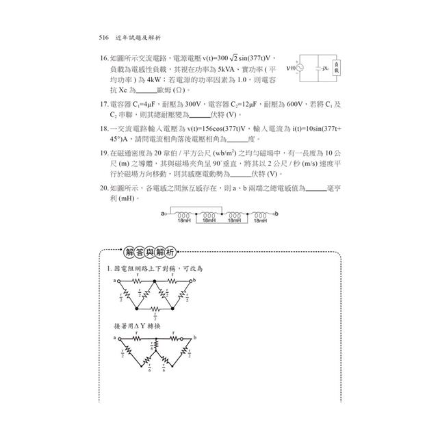 3.近年試題及解析:收錄近年國民營、鐵路特考等基本電學試題及詳解,以利考生熟悉考試趨勢及準備關鍵。