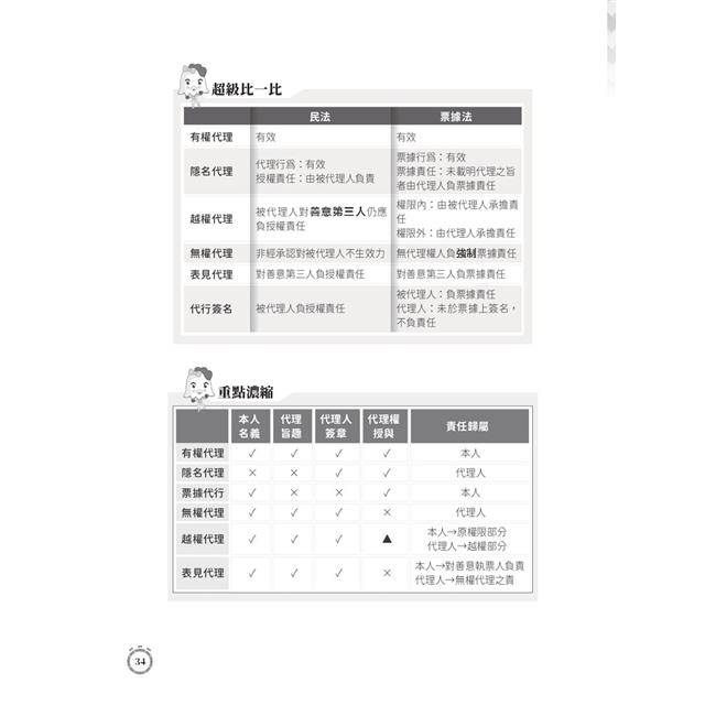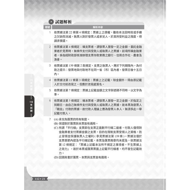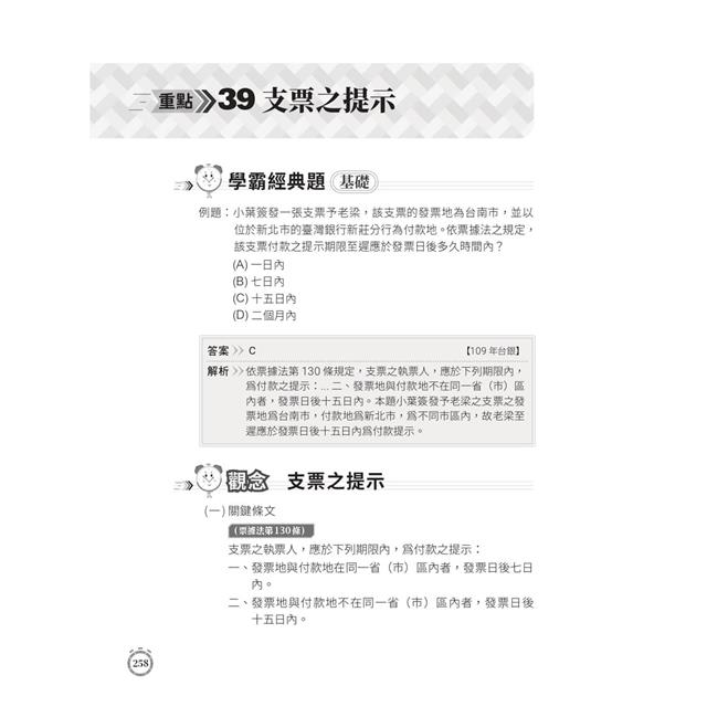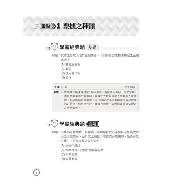 在《票據法》的改版上,可不像別家出版社加加考題,改正錯字勘誤而已,這次優化的重點,放在「應考上榜術」上。我們增添了許多圖表與獨家記憶小秘訣,看了就記起來,填答時自然浮現標準答案,是最貼切自學者需求的高效率應考書籍。