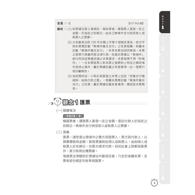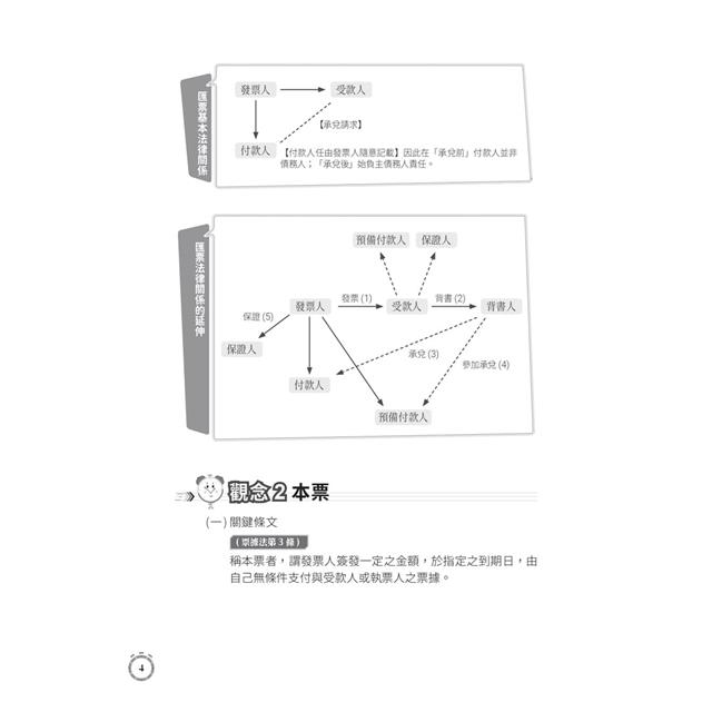 2.故為應對此種直觀考題,「票據法通則」與「匯票」的概念最為重要,其原因不外乎是,「匯票」為所有票據中規定最為詳盡者,其他「本票」與「支票」均有部分內容準用匯票;至於「通則」,除對三種票據皆有適用外,也包括些許特殊民事法學基礎,故以上述兩部分為核心建構基本票據素養,是學好這科的不二法門。
