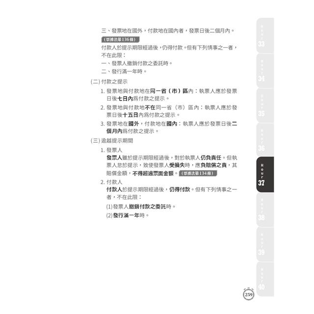 這本《48小時考上銀行-票據法》收錄票據法內容,將匯票、本票與支票法條進行抽絲剝繭,並細心解構票據法通則,深入而淺出,即便非法律系的一般讀者也能在作者的諄諄引導下循序漸進,事半功倍的累積法學實力。