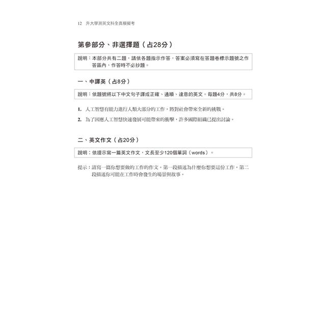 2025【12回全真模擬試題】升大學測英文科全真模擬考(升大學測)