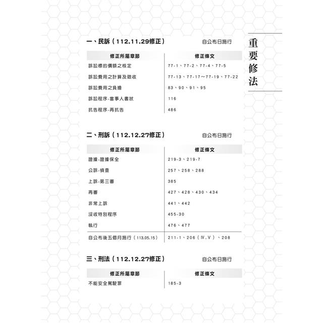 3.而本書的重點法條整理,記憶起來具有高回報率,方為長期備考的最佳手段。