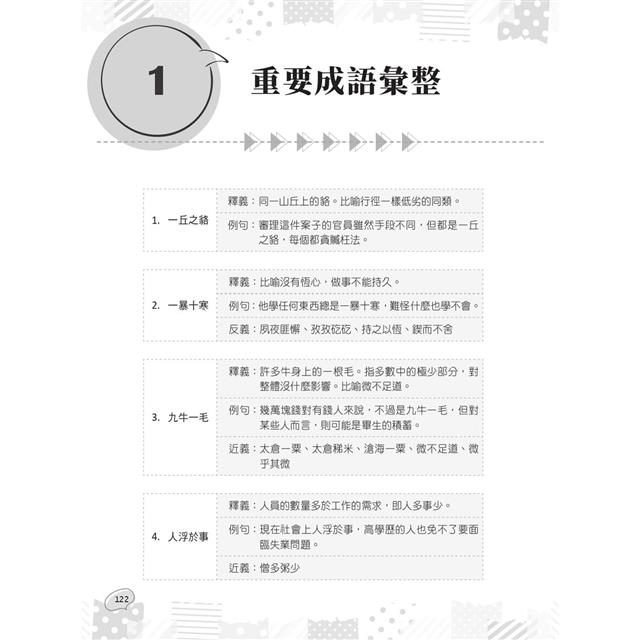 整理超過一百條重要成語,每條成語均附有解釋與例句,易懂易讀。