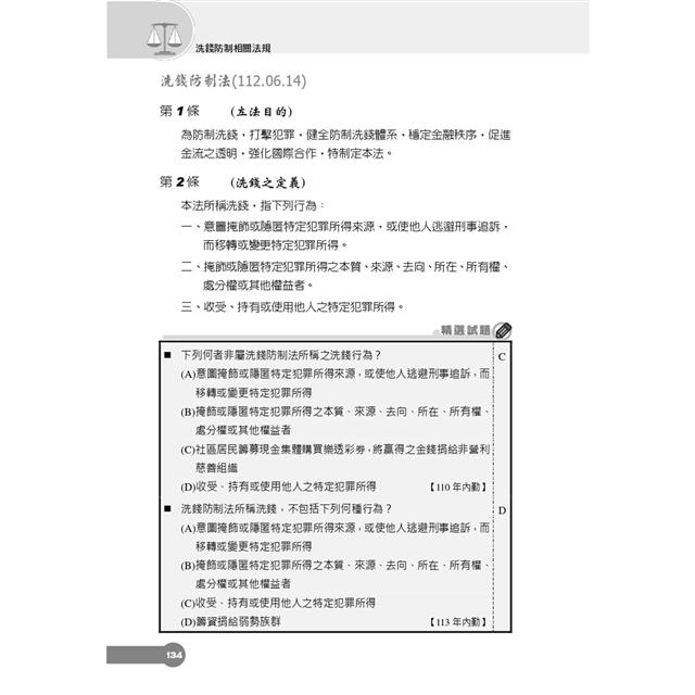 【洗錢防制】這個科目一開始也不是很了解,我同樣會把要考的法條全部印下來讀,讀到滾瓜爛熟後,再搭配三民輔考出版的書當輔助。
