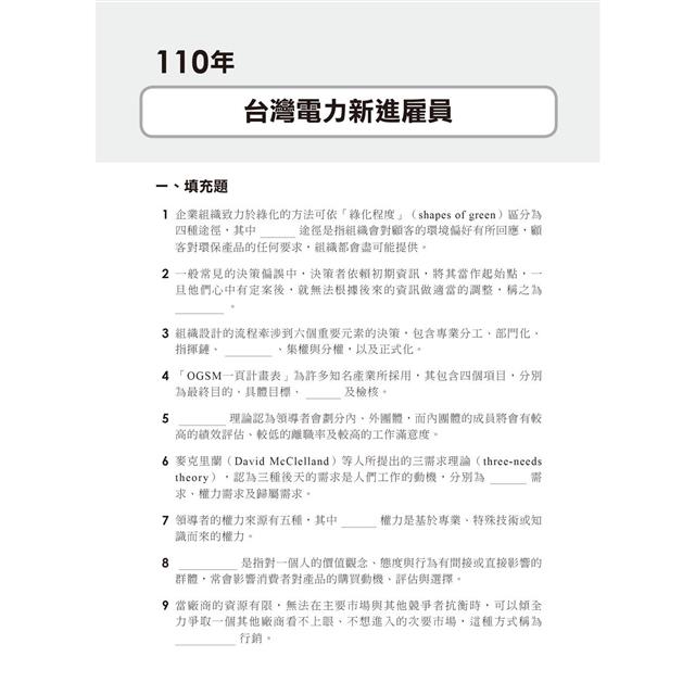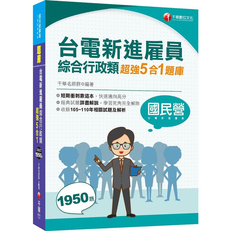 2024台電新進雇員綜合行政類超強5合1題庫(含國文、英文、法律常識、企業管理概論、行政學概要):收錄105~110年相關試題及解析