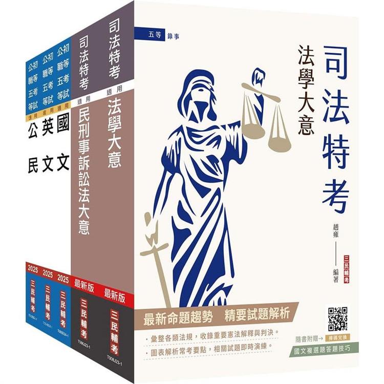 ★內含:國文+英文+公民+法學大意+民事與刑事訴訟法大意,無敵組合,考科一網打盡!