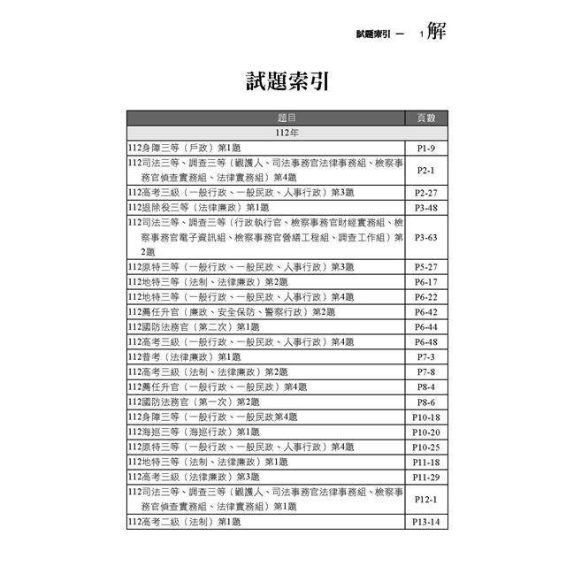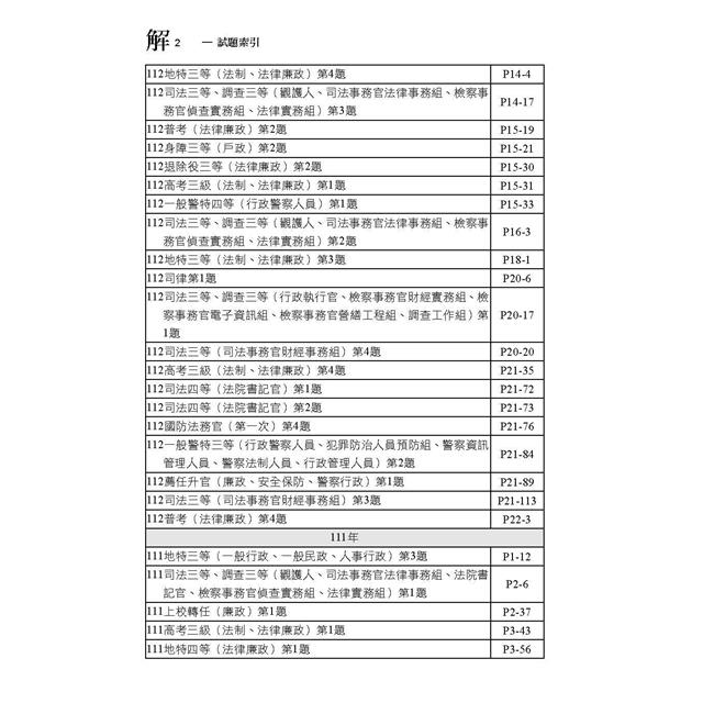 三、本書收錄的考題截至112年度的地方特考,而針對尚未被出成考題的新學說與實務,本書也將之設計成實例題,讓本書不只「考古」,更能「預知」。