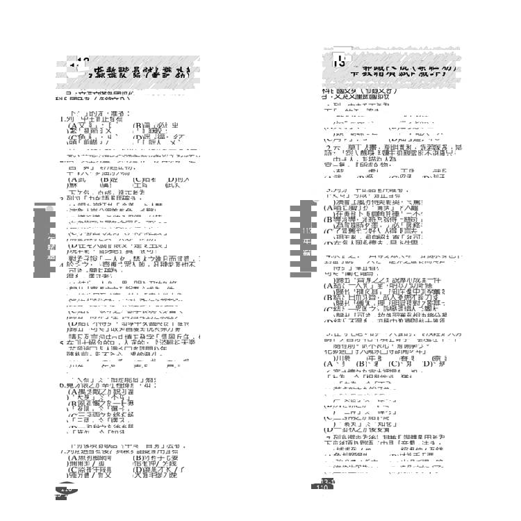語法修辭常考的方式是分析字詞組成,諸如雙聲、疊韻、偏義複詞、連綿詞等複詞的組成方式,以及擬聲詞的分辨等,都是常考的項目。另外修辭類題目只要對各種修辭的定義和例子夠熟練,就可以在短時間內判斷答案。因此平時便要熟悉各種修辭技巧,可以增進答題時的流暢度和自信心。