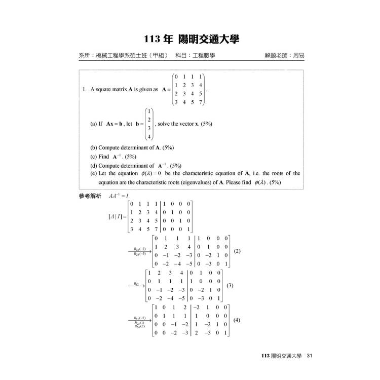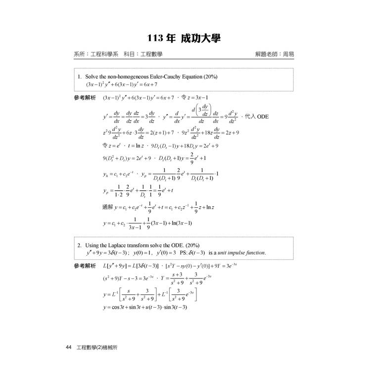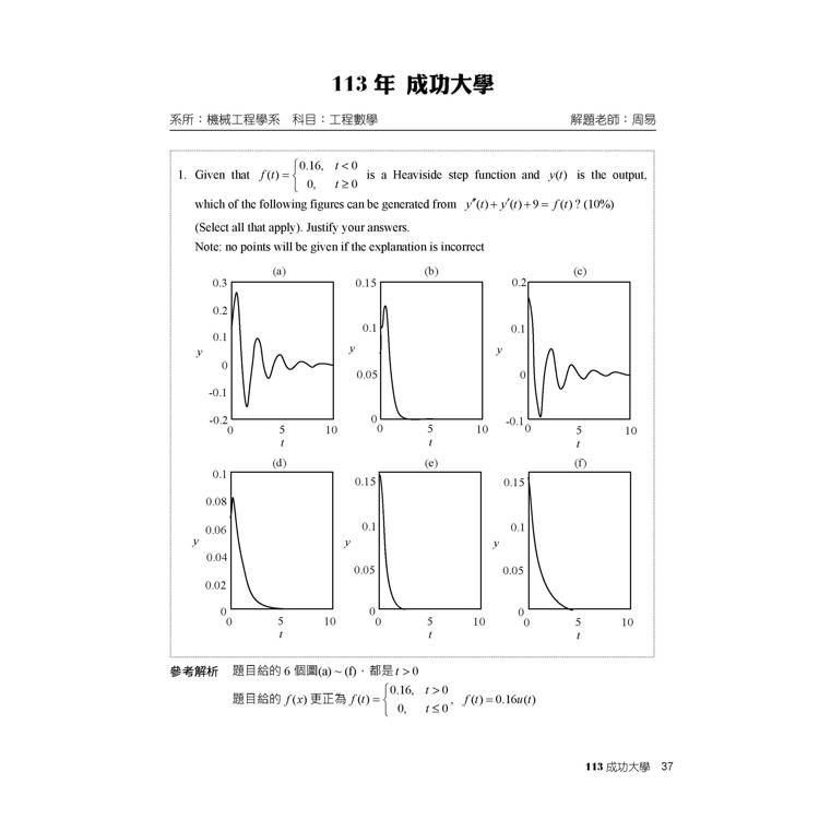 本書收錄國內各重點大學機械所111~113年【工程數學】共三年試題含解析。