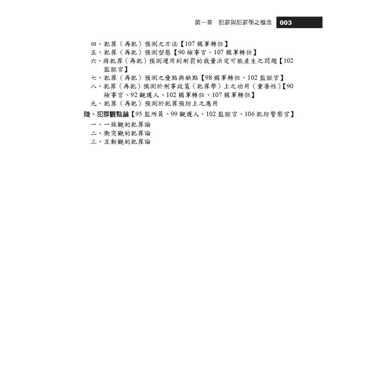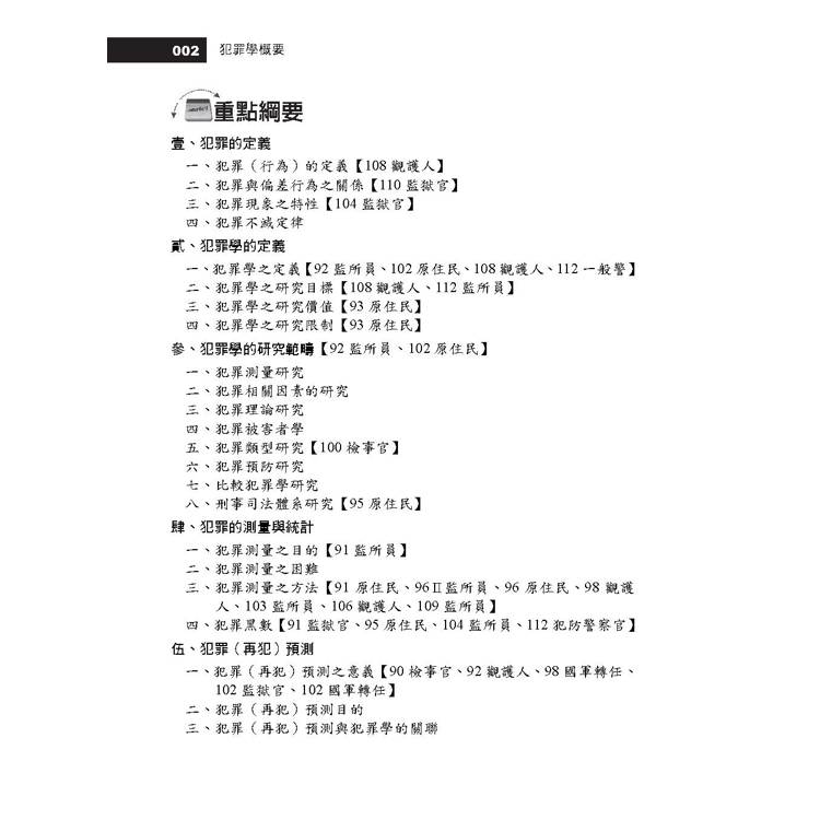 這時,運用大量圖表整理考點精要、並廣泛參酌典試委員新著內容的《犯罪學(概要)》就是您的最佳選擇!