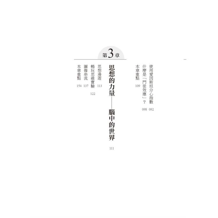 本書將愛因斯坦這位傳奇人物的許多洞見帶入生活,探討的主題甚廣,從好奇心、專注力、目標設定到冒險精神,皆涵蓋其中。