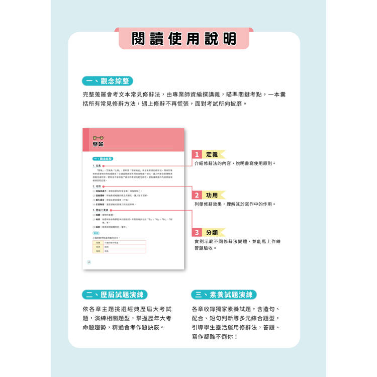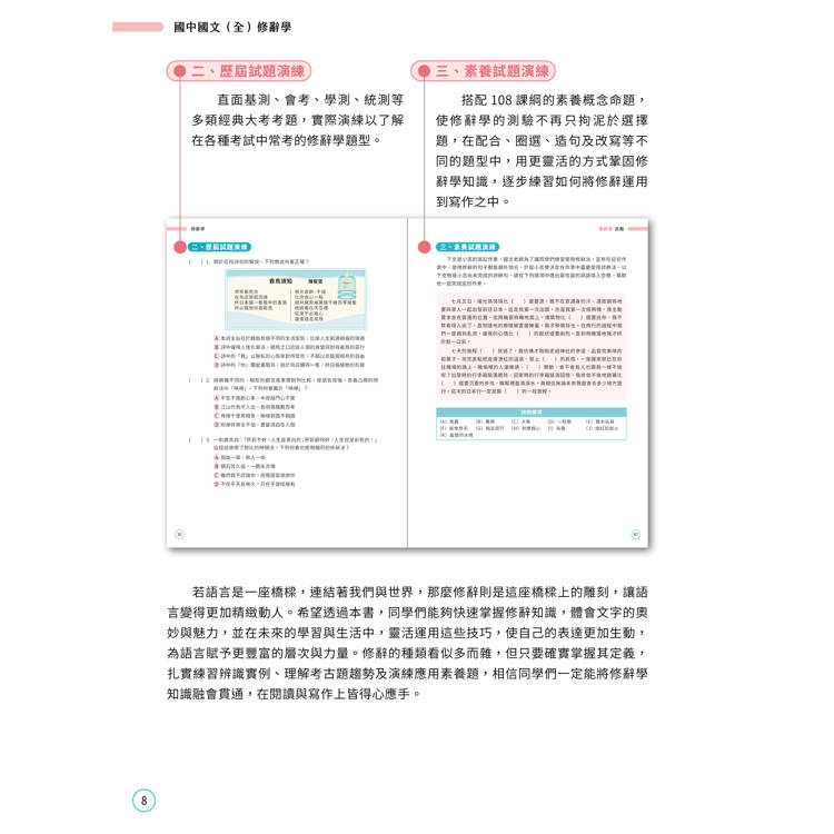 ▶【會考制霸】國中國文(全)──修辭學 書籍3大特色◀