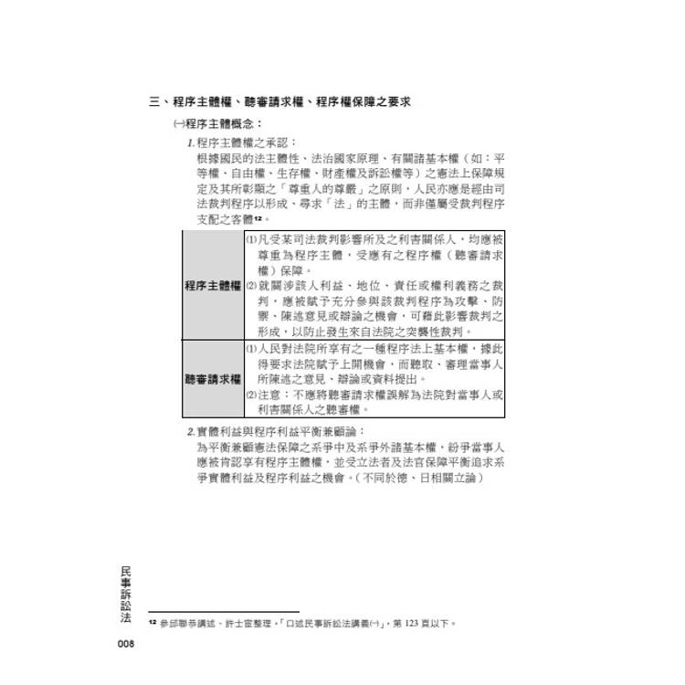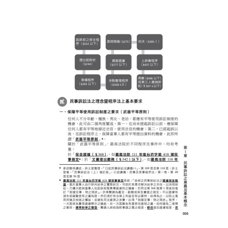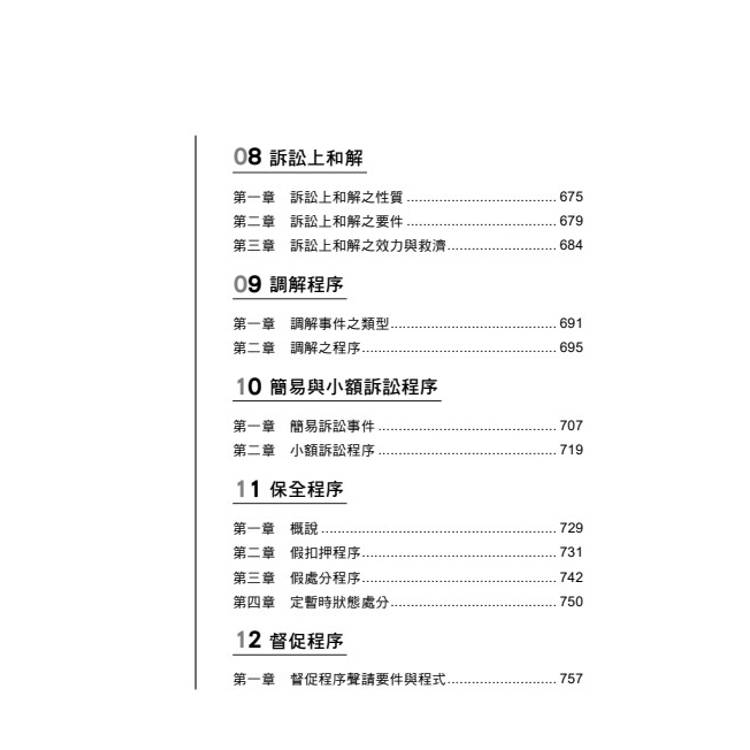 本次順利改版應歸功於出版社編輯、校稿等全體工作人員,謝謝您們辛苦付出。本書同時作為筆者任東吳大學進修推廣部講師之指定教材,期能輔助進修學生由淺入深,一探民事訴訟法之奧義。