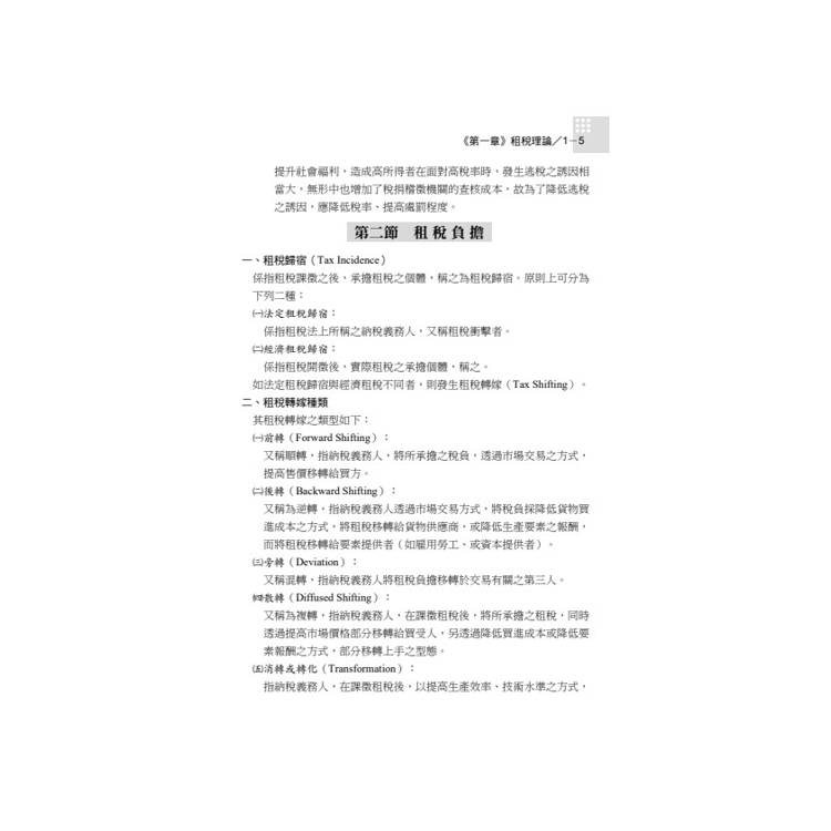 第十章到第十三章:除了上開租稅外,財產稅的土地稅及其他課稅,亦在本書均有詳細說明。