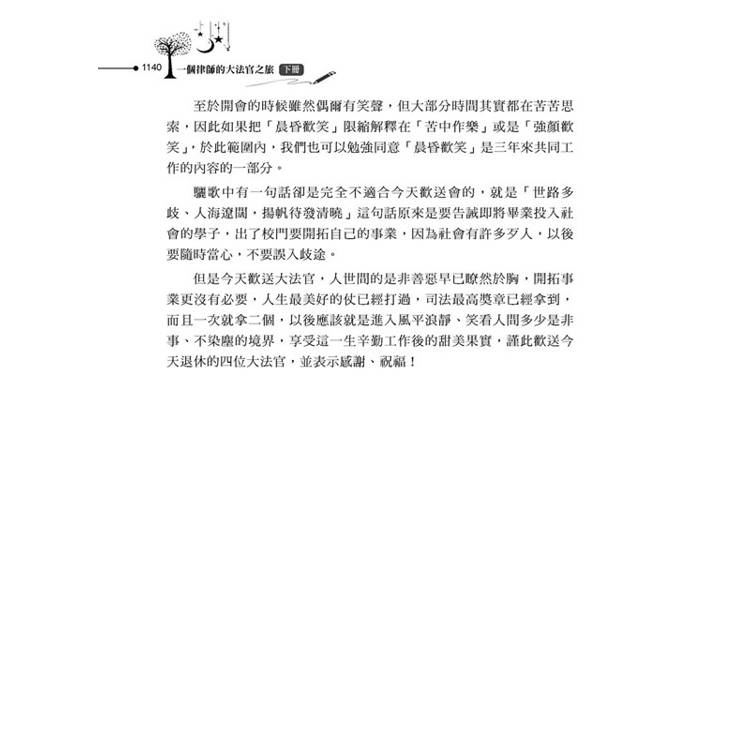 最後,對想要從各個多元面向瞭解大法官解釋以及憲法判決思辯過程的法律人或社會大眾而言,本書確實是一本深入淺出、值得反覆一再閱讀的好書,故樂於為序!