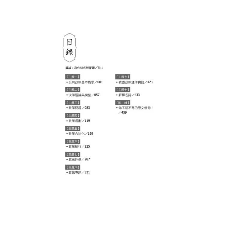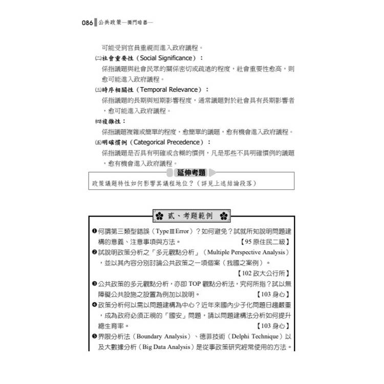 收錄重要名詞與公共政策學者名言,並以英文標註,考生可靈活套用於答案中,展現深度與專業度。