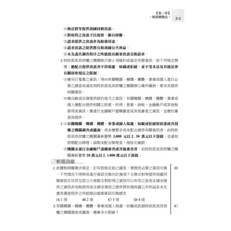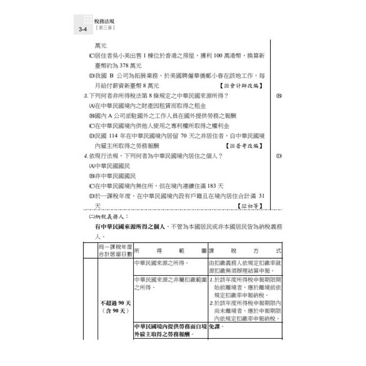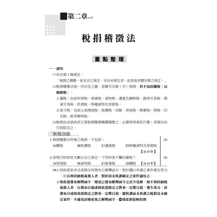 稅務法規應熟讀本書第二~六章、第十三章及第十四章,考試類型為五十題選擇題。
