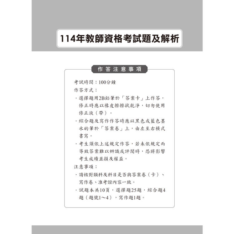 114年教師資格考試題與解析