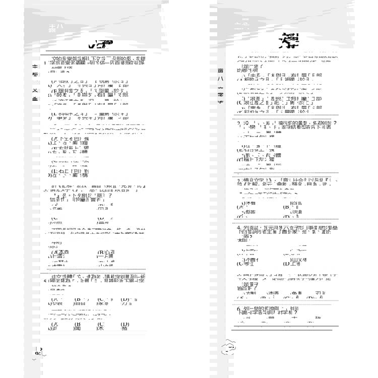 熟悉考試題型與出題方向是應考時能否獲得高分的關鍵之一,尤其是國語文考科,平常就要養成大量刷題的習慣,考試時才能穩定發揮實力。此部分仿照國小教師甄試的題型,替考生整理了8回模擬試題,每回50題,包括44題單選題及6題閱讀測驗(3篇文章),透過實戰模擬演練,快速鍛鍊答題技巧與速度!