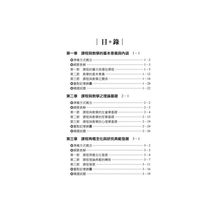 考生的學業成就常與學習動機交互作用,本書期許能迅速提升考生學習成效,進而引發喜愛探究課教領域的動機。本書主要強調考試功效及重點整理,願作為通過考試之敲門磚。倘視課程為多元動態的生命旅程,希冀本書作為旅行的「車票」,於各位考生通過考試後,作為終身學習的教育工作者,仍喜歡課程教學、愛上課程教學,因此,邀請各位考生共同參與課教的美好饗宴。