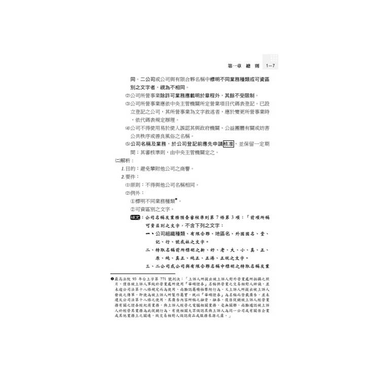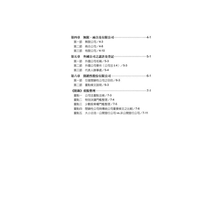 筆者特別將新公司法具有考相的重點按公司法各大章節加以編排,藉此讓考生建立一個完整的體系,只要念一本書就可以成功克服新公司法的所有難題。