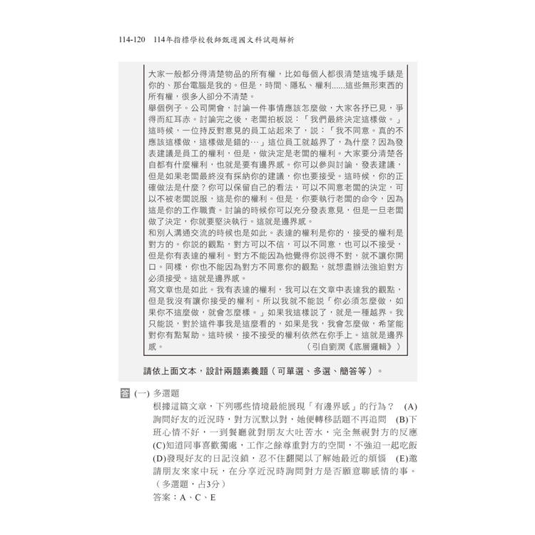 歌可泣的!幾年來,有勇敢追夢的「新中文人」的支持,考完試立即分享記憶中的試題文字,經過多人所提供作比對,才釐出試題梗概面目,這些朋友功德無量,造福更多的人,你們是幕後英雄!但也有極少數遺珠之憾的試題,長篇原文無法記憶下來,參考答案只能從缺。