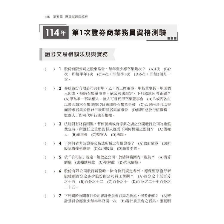 114年 第1次證券商業務員資格測驗