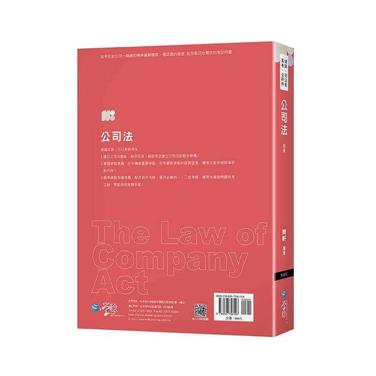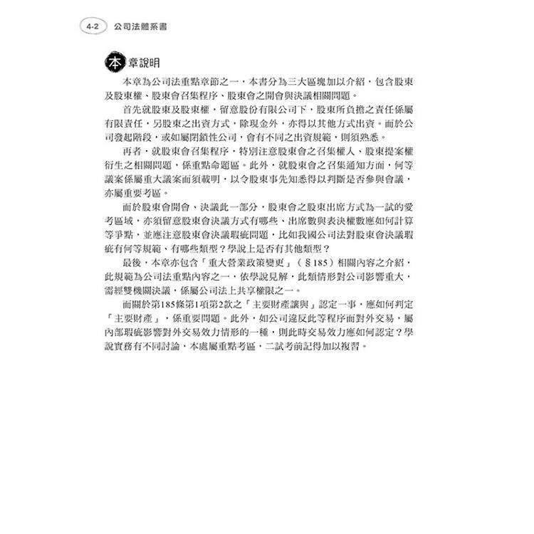 1.建立公司法體系:由深至淺,協助考生建立公司法的體系架構!