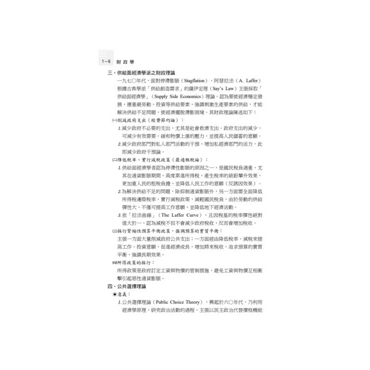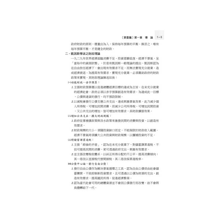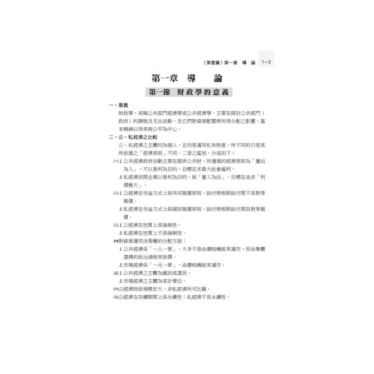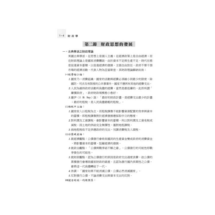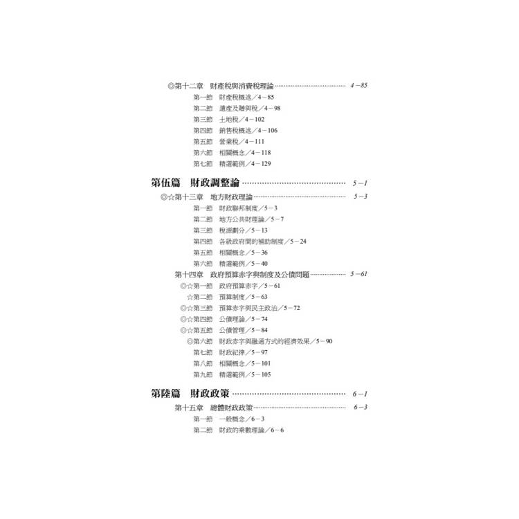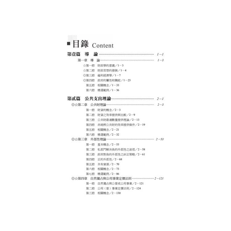 1.因應公職考試所編寫之一本有系統且全面性的財政學。版面安排及內容推敲均使讀者有正確觀念及分析之能力。