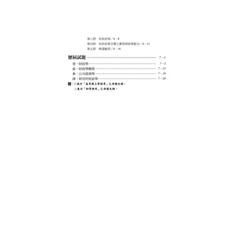 3.本書架構完全根據考試院命題大綱,掌握命題方向,另網羅歷年來完整歷屆試題,是成為財政高手必讀之書。