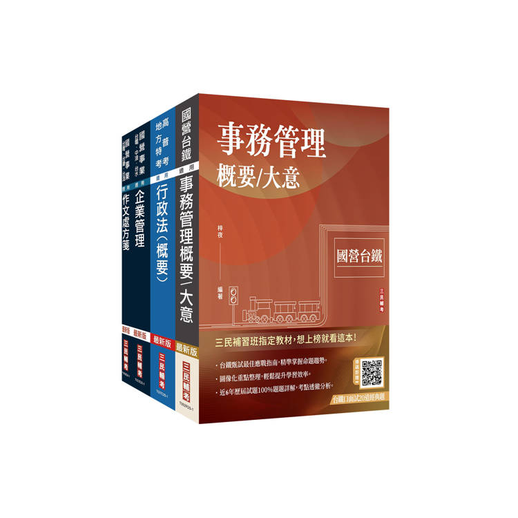 為幫助國營臺鐵考生充分備戰,本社特別針對考生需求,全新改版《事務管理概要/大意》、《行政法(概要)》與《企業管理》,將歷年出題的趨勢與常考題型做全方位的整合與歸納,化繁為簡,讓內容更易讀好吸收;再搭配《作文處方箋》,輕鬆攻克共同科目,讓您一次就考上國營臺鐵!