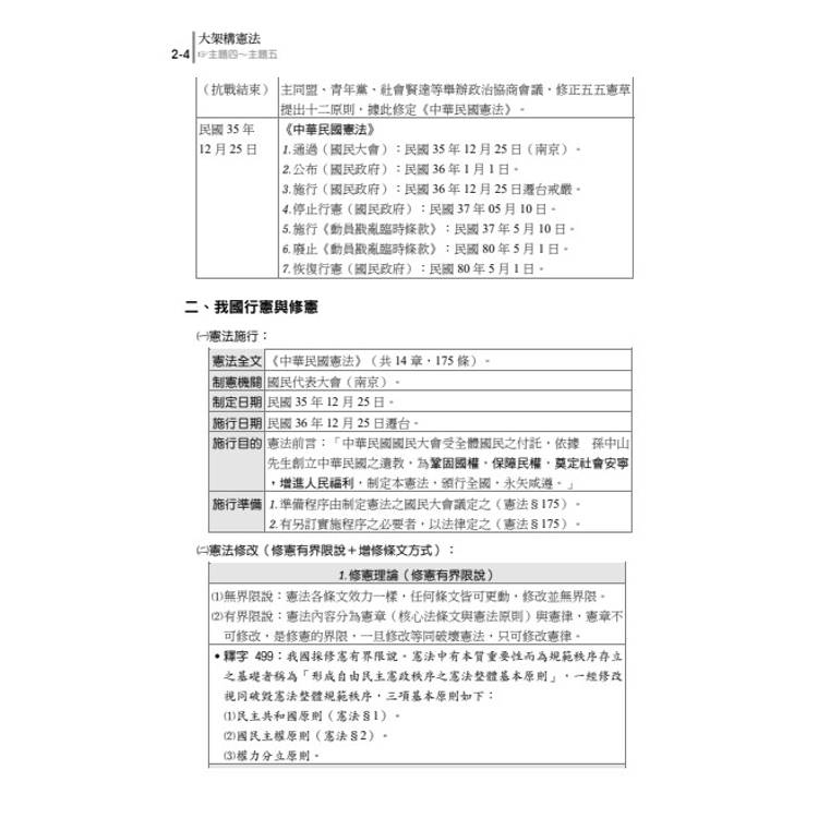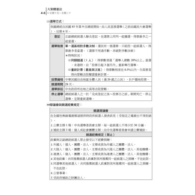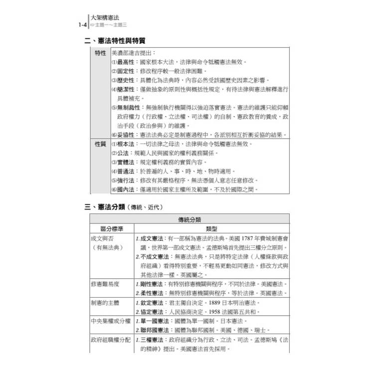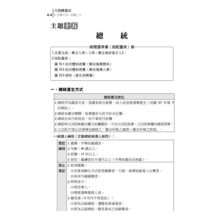 解構龐雜憲法文字,以清楚簡潔的「表格」標誌「重要考點」,以利讀者迅速吸收、比較與背誦。