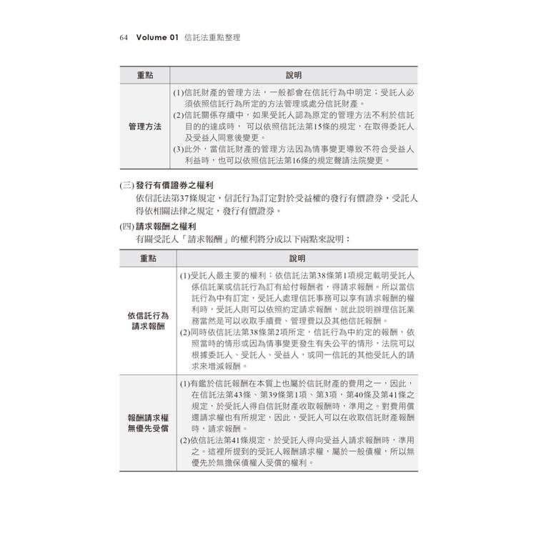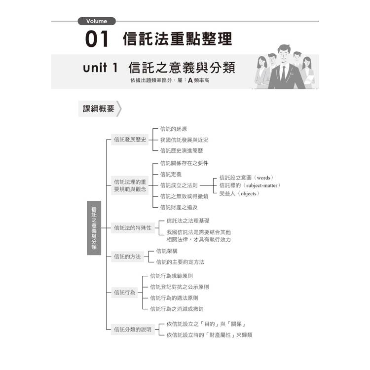 本書係依據台灣金融研訓院所出版的「信託法制」及「信託實務」二本書為基礎,將重點歸納整理後,讓欲面對信託業務人員證照考試或對信託有興趣的讀者容易理解與為測驗做準備。