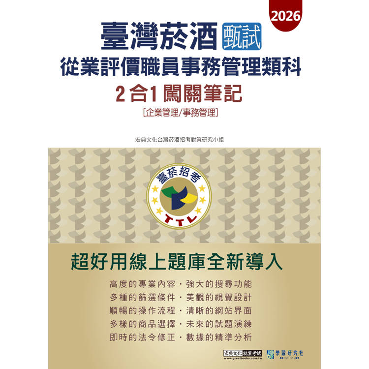 臺灣菸酒甄試新進從業評價職位人員 (事務管理類)2合1闖關筆記(專業科目) [線上題庫即時更新]