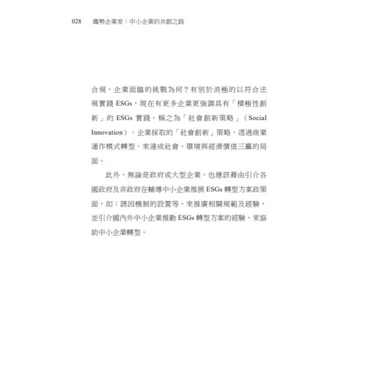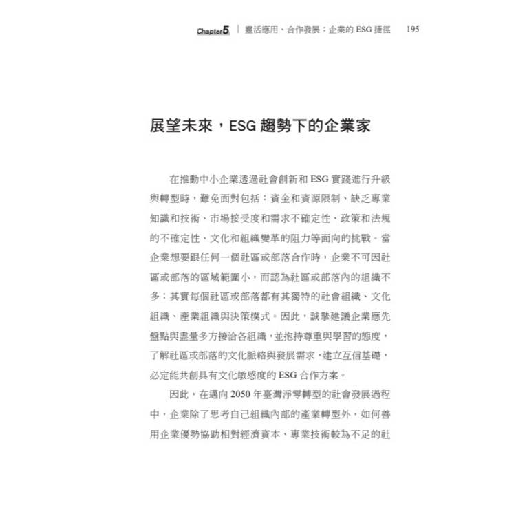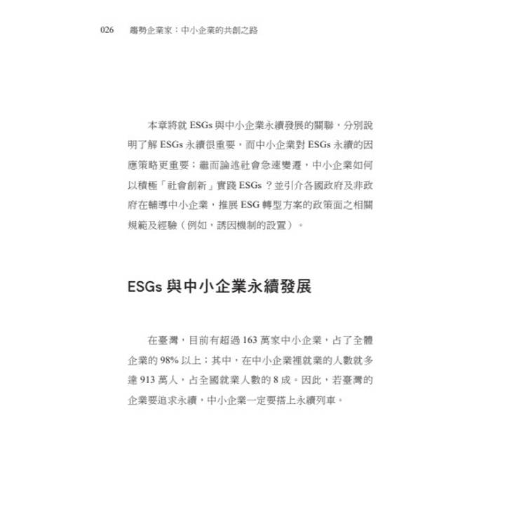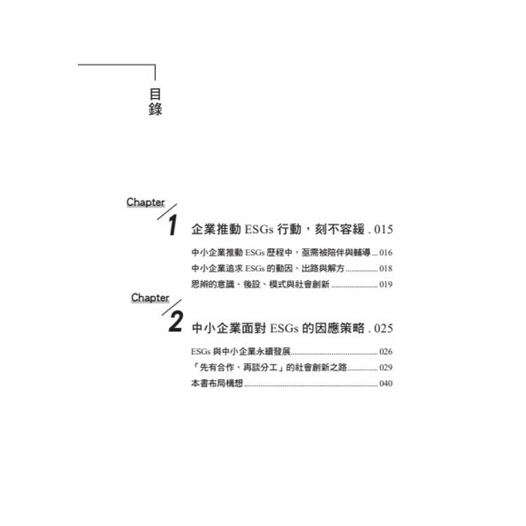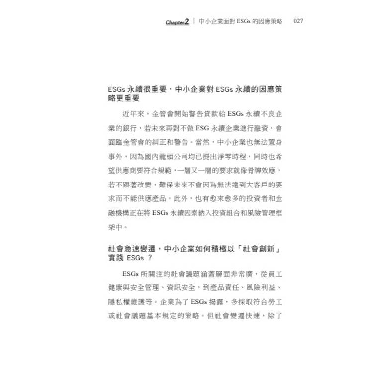 書內點出中小企業在推動與追求ESG的過程中,可能會面臨的問題與社會責任,並說明該如何尋找出路與解方。