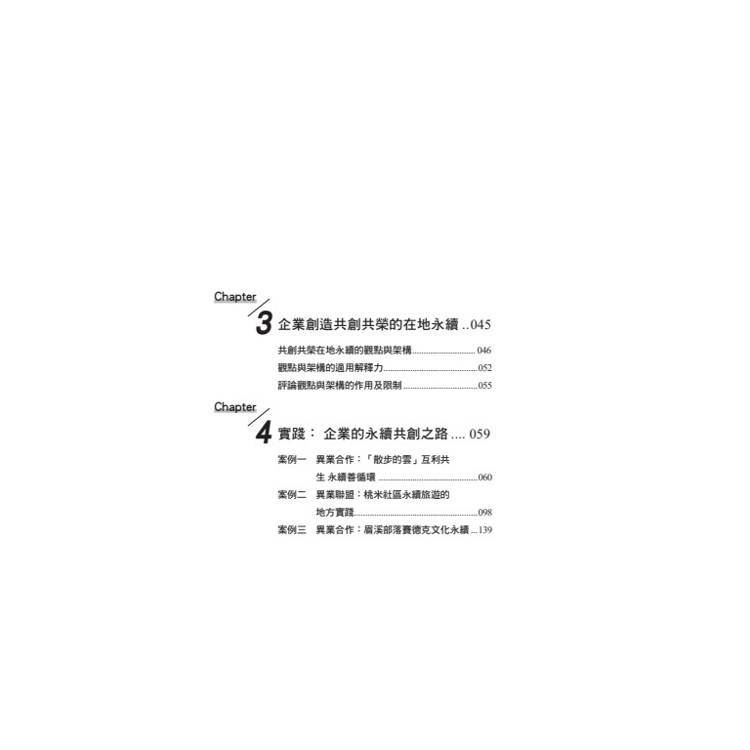 書內也闡述了企業在發展共創共榮、在地永續的觀點與架構,並說明在地永續的觀點與架構的適用解釋力,以及觀點與架構所面臨的作用及限制。