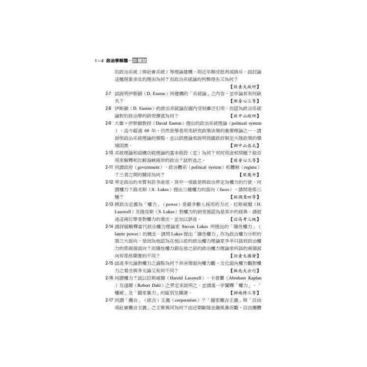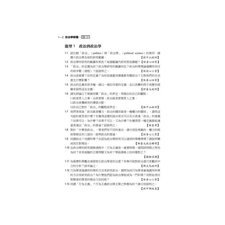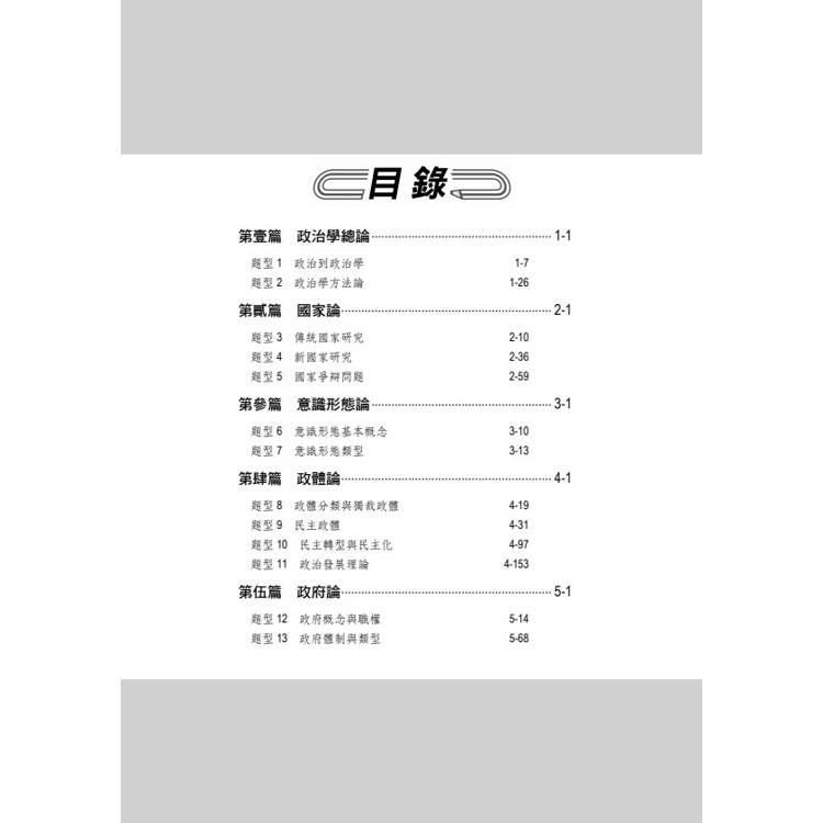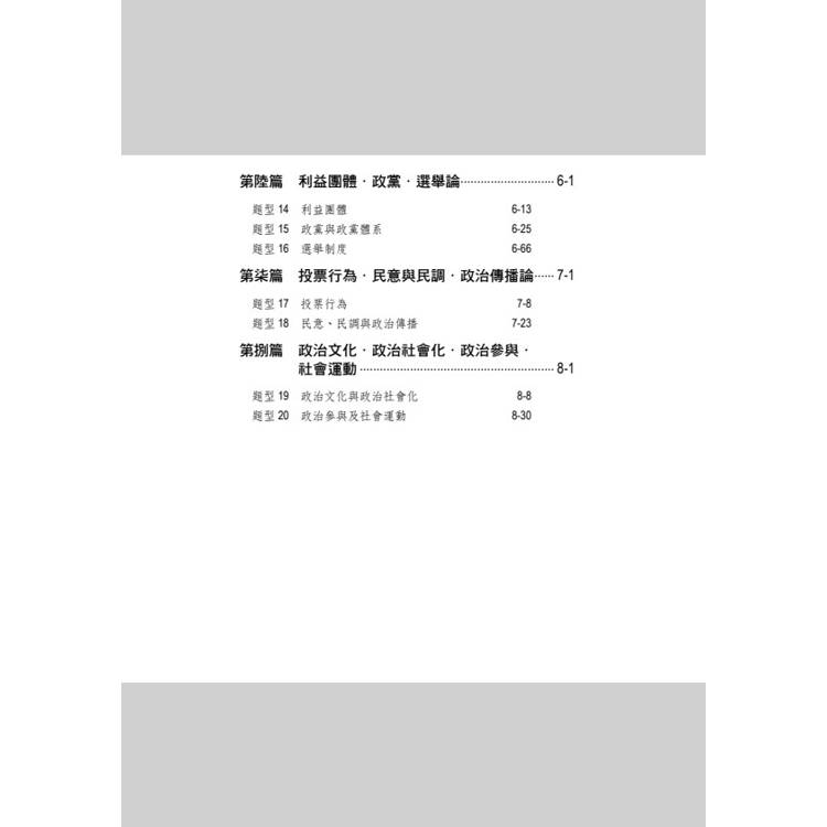 收錄各類國考與研究所政治學考古題,完整掌握考情脈動。