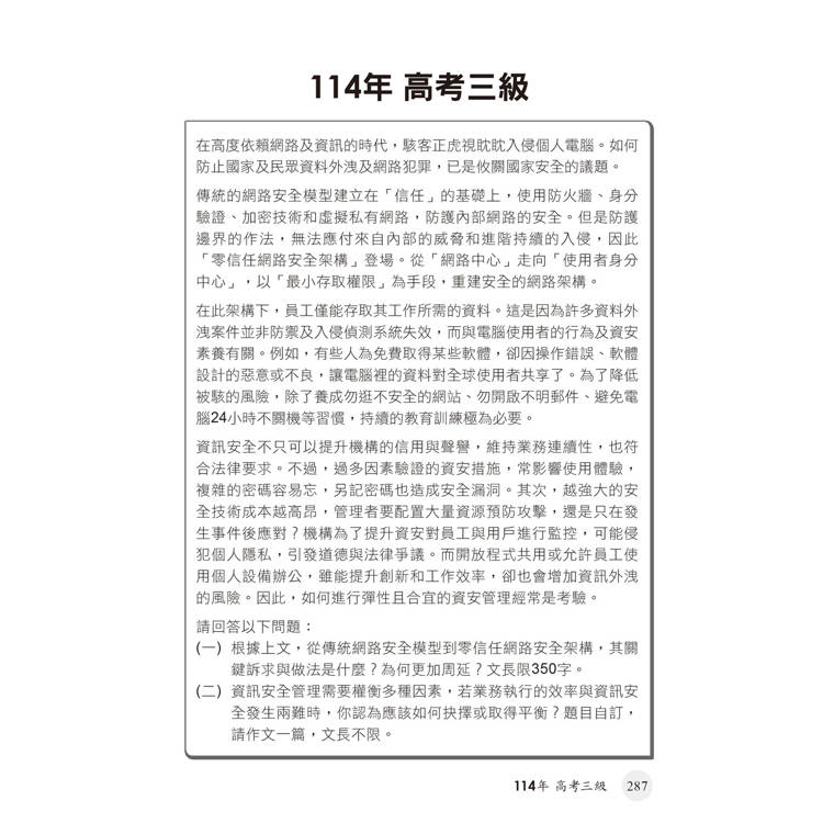 經過了這11章的特訓,接下來要做的,就是大量地閱讀及提筆寫作,為此,第12章收錄近年的國家考試、國民營考試的作文題目,進行實戰演練。