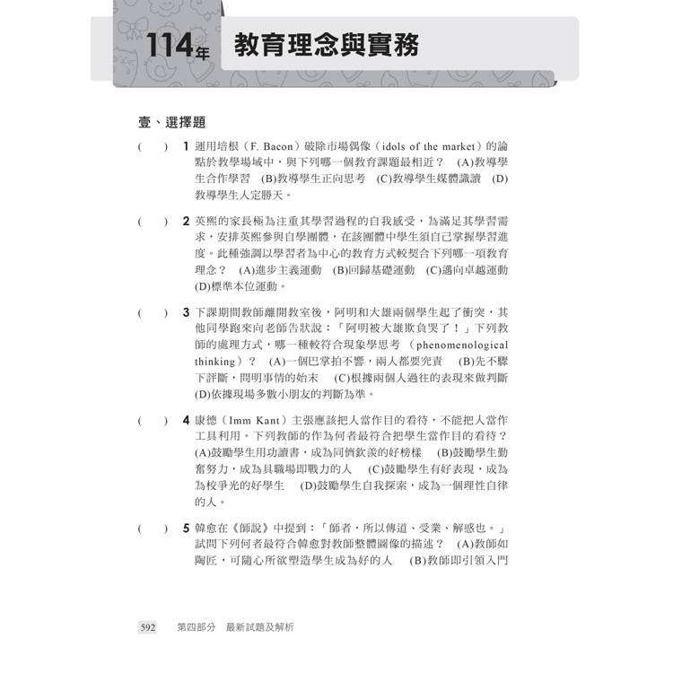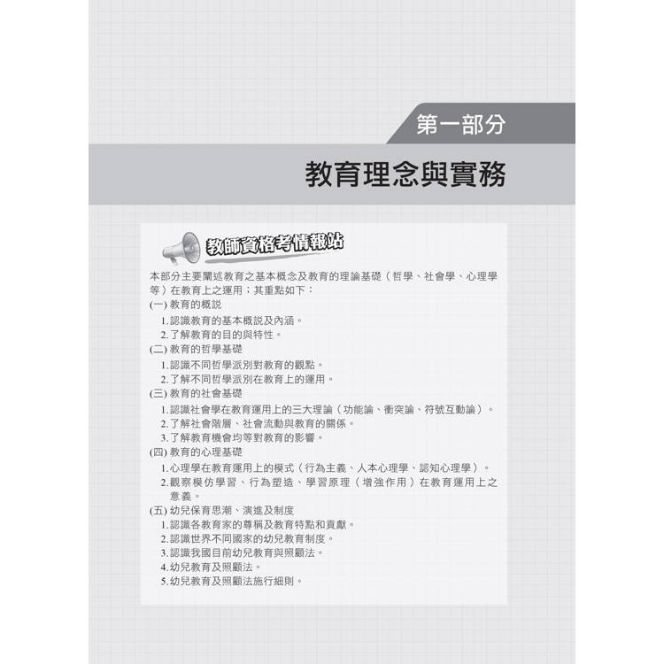 收錄113~114年教師資格考試的試題,題題均附有完整解析,使讀者充分掌握命題趨勢。