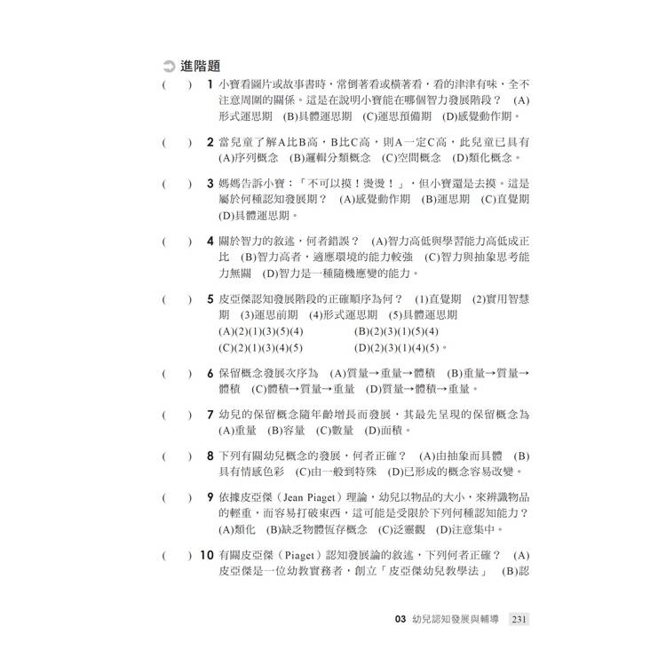 因此,作者依據教資最新考科「教育理念與實務」、「學習者發展與適性輔導」、「課程教學與評量」,將《幼兒園教師類教師資格考通關寶典》一書重新構思、整理、調整,期使能隨著時代的需求,讓同學們更能順利馳騁於幼教師之路上。