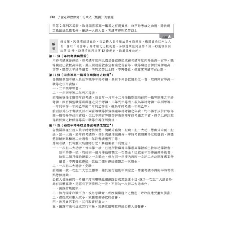 子雲老師上課啦:子雲老師教你寫行政法(概要)(測驗題)