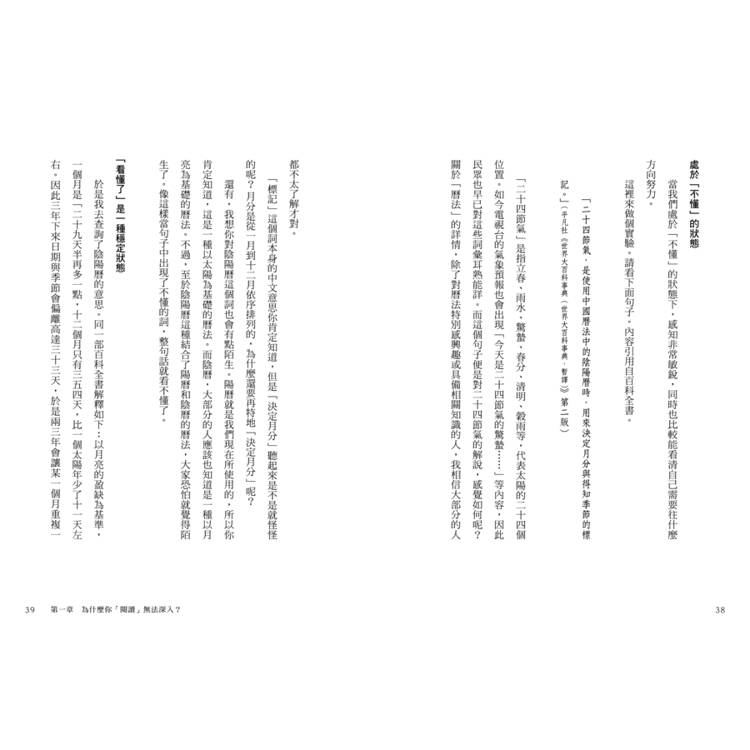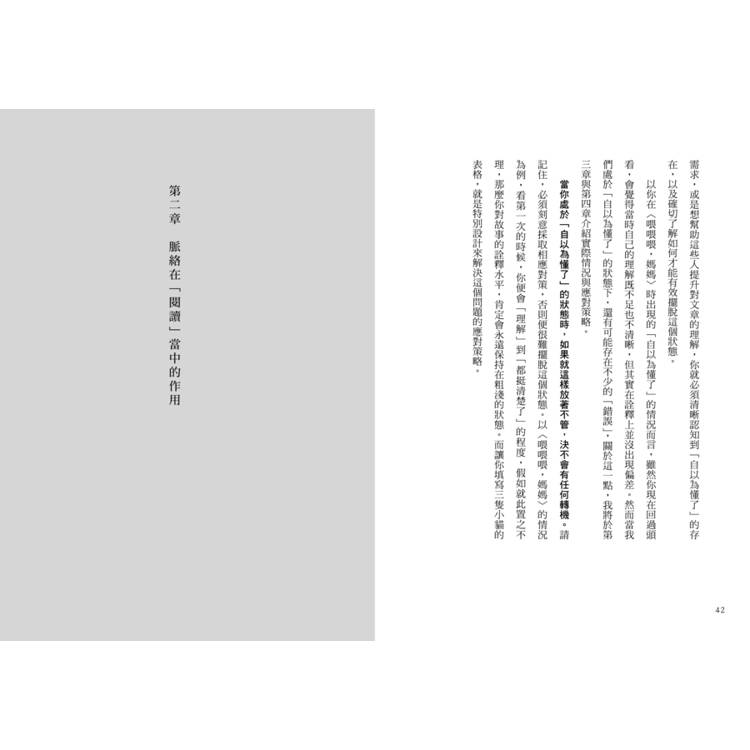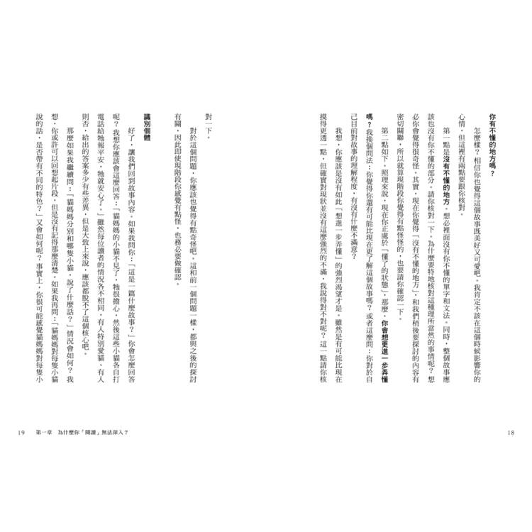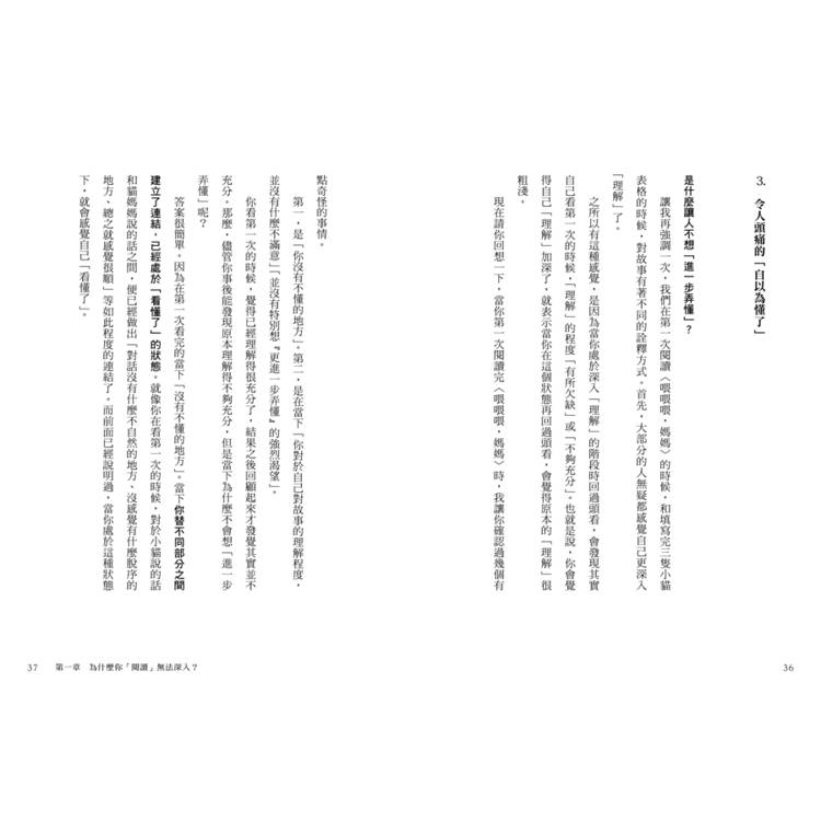 只要按部就班閱讀本書,你將切身體會「自以為懂了」是妨礙你進一步深入閱讀的阻力,並且學會如何擺脫這個困境。