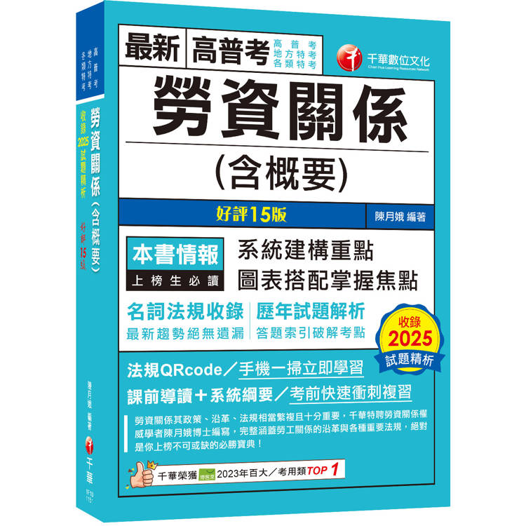 本書特邀勞資關係權威學者陳月娥博士編寫,陳教授除在大學任教外,並於勞工行政公務體系數十年,在教學及實務上經驗豐富。書中對高考、普考、地方三、四等申論題型考試精心編寫,內容涵蓋理論與實務,使你快速熟習相關之政策及法規。讓你上考場破題正確,更可答得漂亮完整,以爭取最高分數為目的。本書特色如下: