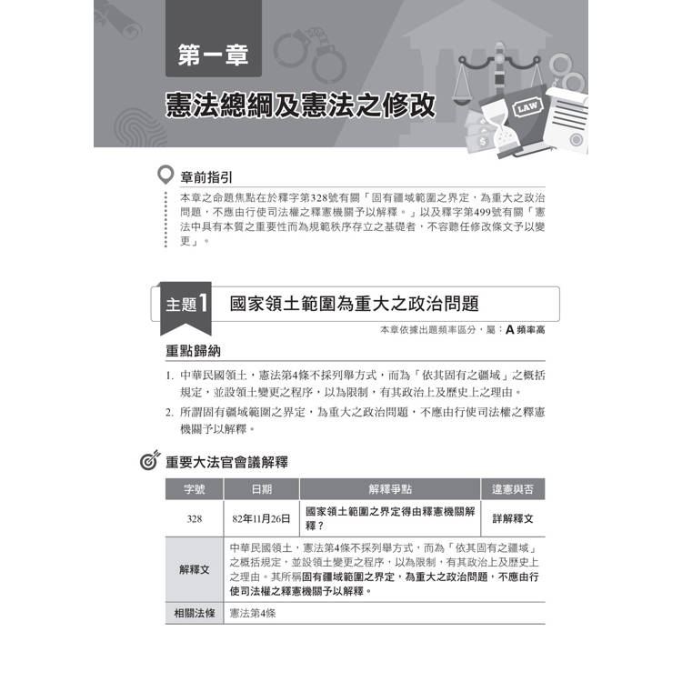 第14章則為憲法訴訟法施行後,憲法訴訟裁判之重點節錄與試題觀摩。