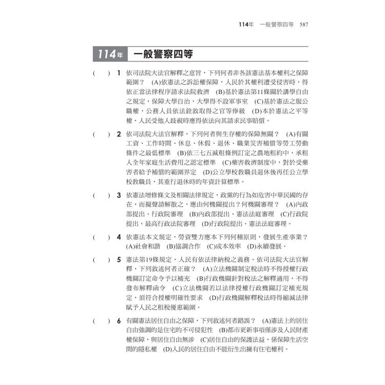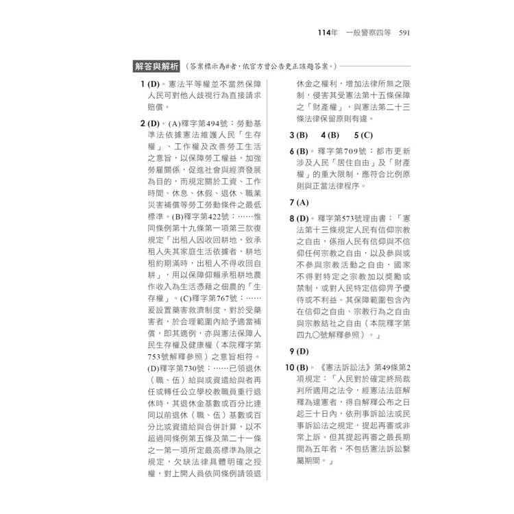 在本書的最後,則提供了「最新試題及解析」,特別臚列了112∼114年度各類科憲法的完整考題並搭配上解析。