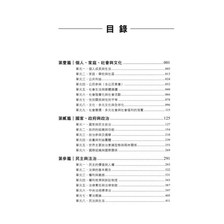 完整說明本書閱讀方式,並結合考試準備、唸書方法與選擇題答題技巧,不只給你公民重點,更教你怎麼讀、怎麼考。
