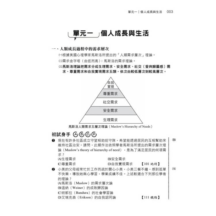 依據國家考試命題大綱整理各考點,並將題目直接置於每一個主題之下,所以無論是同學預習也好複習也罷,都能事半功倍。