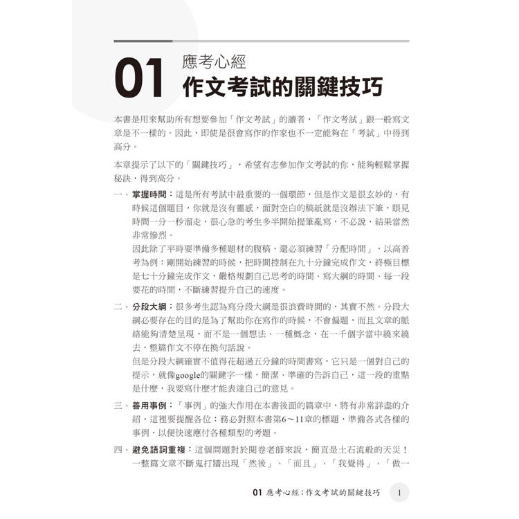 在各主題的重點表格之後,則匯集了重要的「歷屆試題觀摩」,將相關考題依難易度先後呈現,以協助應試者驗收學習成果。同時針對若干難題提供詳細的解析,以使應試者在準備考試的過程中,得到事半功倍的效果。