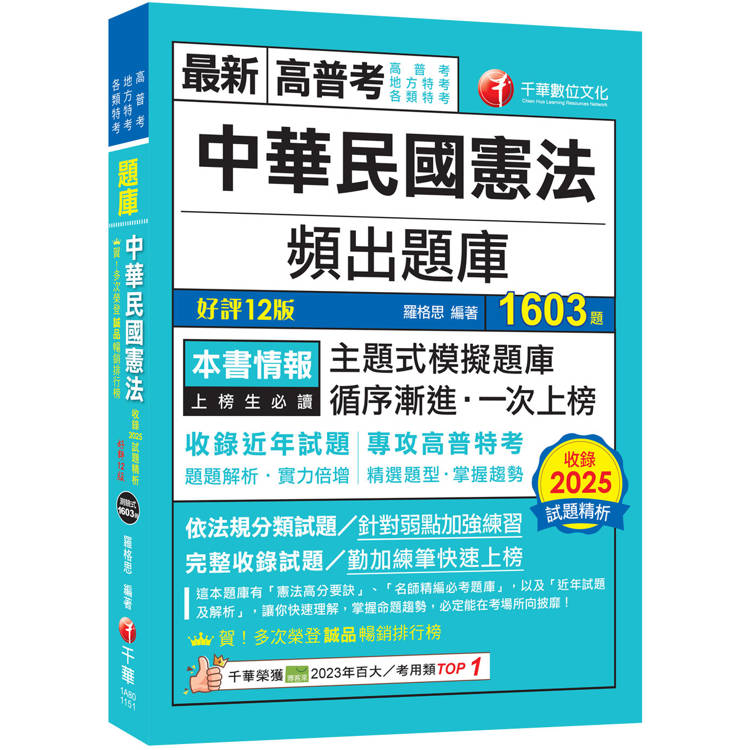 2026【刷題搶分必備】中華民國憲法頻出題庫〔十二版〕(高普考/地方特考/各類特考)